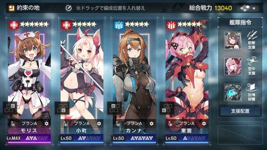 ※この記事はまだ実地検証中及び書きかけです。 目標殲滅を☆5なし、イベント限定キャラなしでフルオートで攻略します。 ■「約束の地」フルオート低レア攻略 「約束の地」の攻略において最も重要なことは、デバフを切らさないようにしてボスを抑え込むことです。 攻略メンバー ☆4焼夷 モリス 先頭においてタンクさせます。オート設定でスキル2を無条件・自身を対象に設定します。 もし、アリスを持っていない場合は小町を入れてください。 まずは「未来へのテーゼ」と「新人訓練」の報酬装備を☆カンナに付けて5・6層を周回し、他のメンバーの装備を用意します。 アリス・ゴヤ・東雲 : ☆5速度セットの武器・動力・防護・推進(メインOP 速度) ☆5状態命中セットの照準(メインOP 会心率)・増幅(メインOP 状態命中) この時点では+6ぐらいまで強化すれば十分です。 とりあえずこの装備で攻略していき、アタッカーの装備を☆6速度セット+☆6会心率セット、ヒーラーを☆6速度セット+☆6免疫セットにすることを目指します。 この編成で7層なら上手くいけばボスの大技を一度も出させずに倒せることを確認済みです。 ☆5電撃の銀河・スリエル・クリームなどを持っているなら、適宜入れ替えれば攻略が楽になるでしょう。 8層を安定周回できるようになったら、武器システムと推進システムを☆6に更新し、次は「沈黙の独奏」を一気に9層まで攻略します。 ■「沈黙の独奏」フルオート低レア攻略 雑魚は無視してボスを集中攻撃します。 攻略メンバー ☆4 疾風 ヴァレリア タンクと防御デバフができます。 ■「閉ざされた城」フルオート低レア攻略 先に手下を排除しないとどうにもなりません。 攻略メンバー 後日追加予定 ■「マグマレーン」フルオート低レア攻略 後日追加予定 |