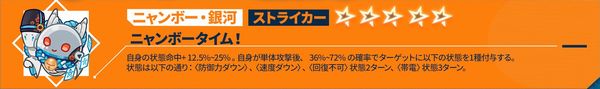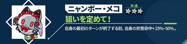 自身の最初のターンが終了する前、自身の状態命中+25%~50%。